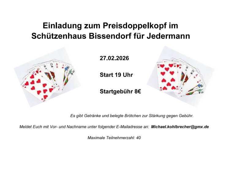 Nach dem großen Erfolg in 2025 veranstalten wir auch in 2026 ein Preisdoppelkopf-Turnier
